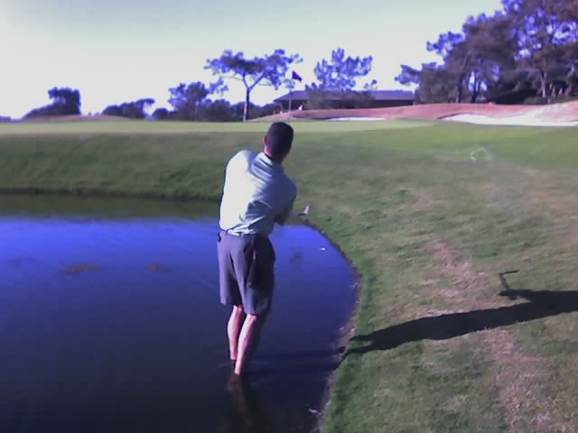 Just thought I'd post this, this is me playing #18 on the South course last fall. My ball was on land, but right on the edge. Decent pitch but I took a 6: