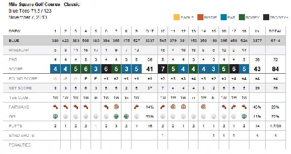 So, according to Lou Riccio, based on your GIR performance, your expected average score would be somewhere between 81 and 83.