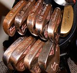 Mizuno MP600 driver, Cleveland '09 Launcher 3-wood, Callaway FTiz 18 degree hybrid, Cleveland TA1 3-9, Scratch SS8620 47, 53, 58, Cleveland Classic 2 mid-mallet, Bridgestone B330S, Sun Mountain four5.