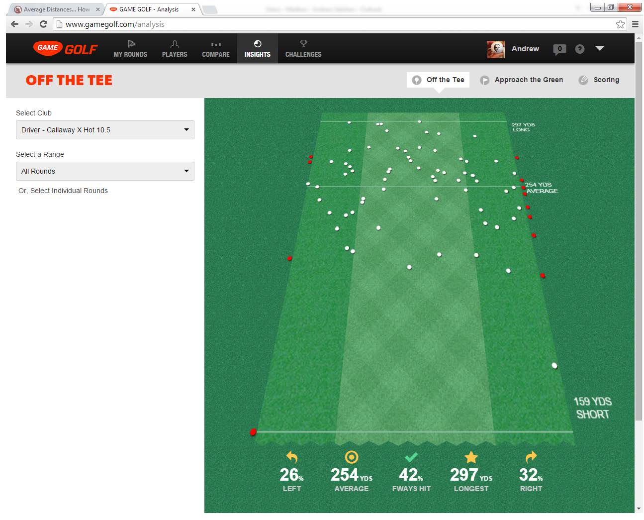 The biggest (and saddest ) eye opener for me since getting the Game Golf, is that I don't hit it 300 yards ... ever.  I've got one out to 297, but that's it for me ...