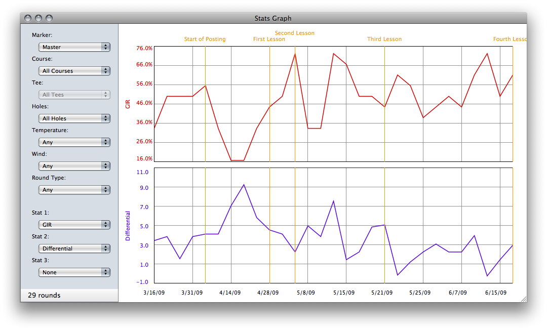 That definitely makes sense. As my scores go down, I notice that I'm getting more GIRs. Focusing on GIR is certainly a great idea, hitting to a comfortable wedge shot, etc from the green never works out.