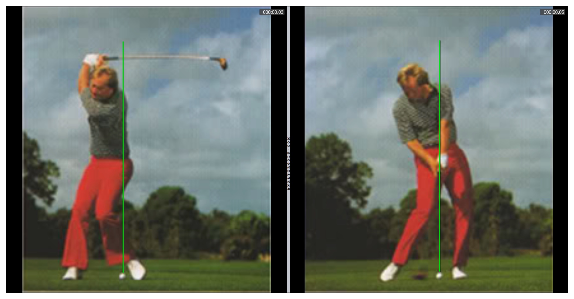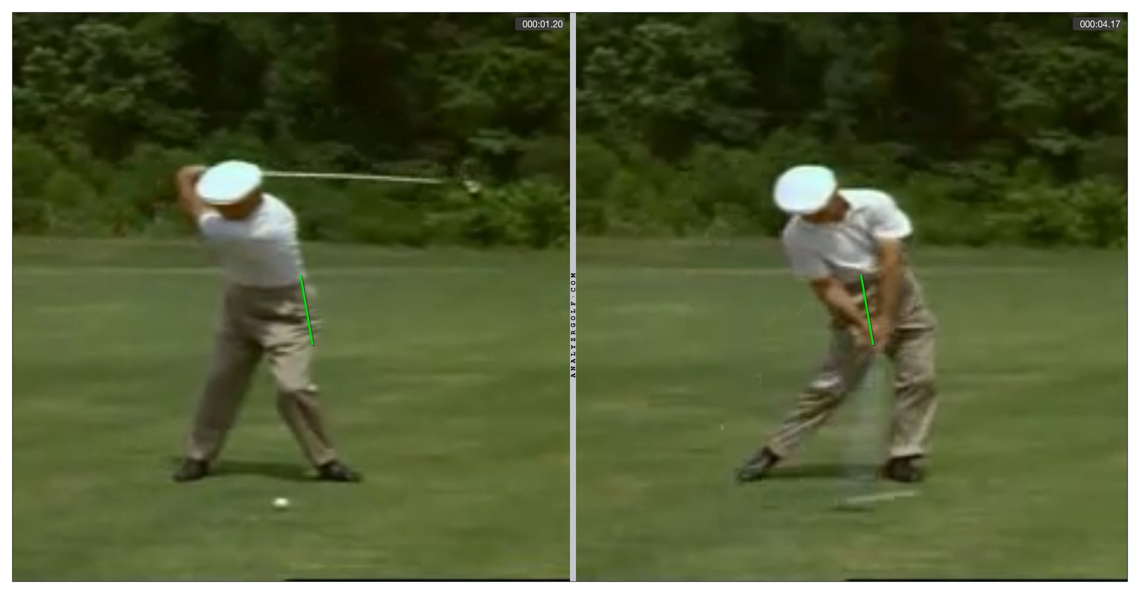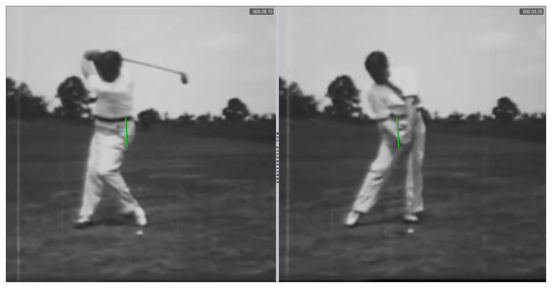 I never said there's no slide. I know that better players externally rotate the front left knee while turning the left butt side backwards. There is not a deliberate slide/bump left of the hips as in the video. But we keep our different ideas and I just showed you several examples of it. I stay with the Sam Snead bandwagon, on applying pressure on the right foot on early transition (squatting/sitting) while externally rotating the left knee and moving backwards the left side. It is a totally different move allowing to generate a more powerfull momentum. To do so you need a firm left side (left foot braking inside the shoes) that is the opposite of what you are showing in the video frame I posted.