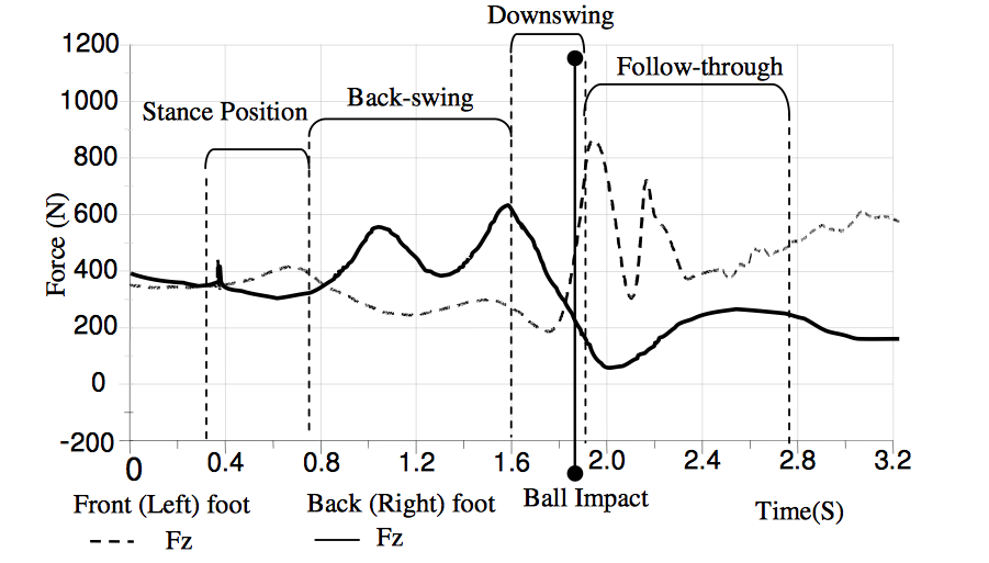 Wallace, E., Grimshaw, P., & Ashford, R. (1994). Discrete pressure profiles of the feet and weight transfer patterns during the golf swing. Cochran, A.J. & Farrally, M.R. (Eds). Science and Golf II. Proceedings of the World Scientific Congress of Golf. (pp 27-32). London: E &