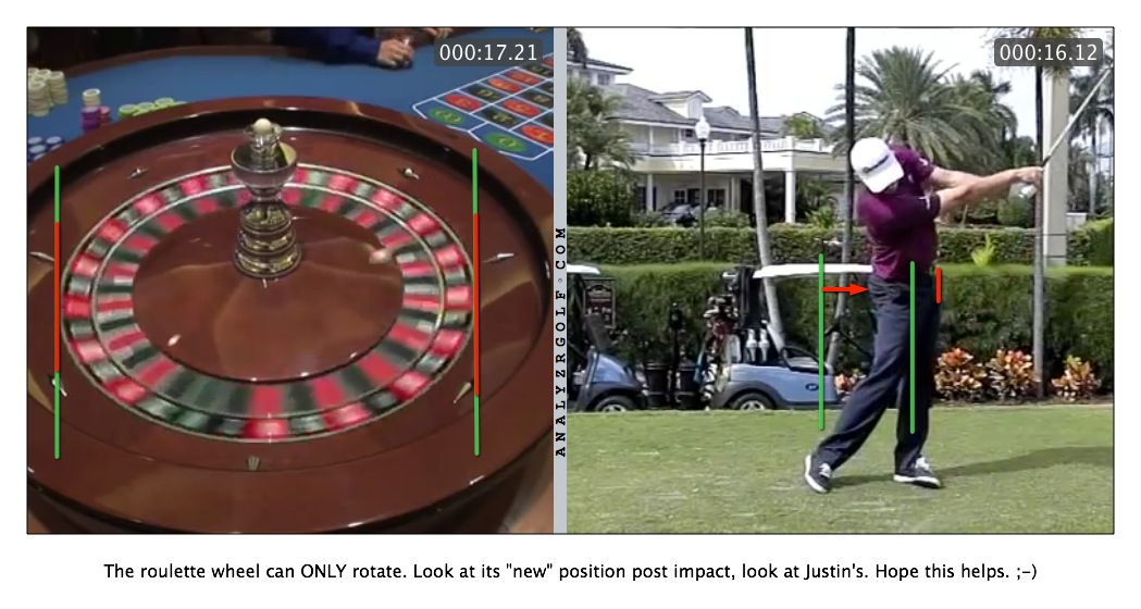 This is a pretty important point, IMO. I've read a lot of arguments people have made back and forth on this subject and I think a lot of times, people get too hung up on semantics or feels, instead of observing what is actually happening. It doesn't matter that Hogan felt like his swing was pure rotation. It doesn't matter if any other pro describes his transition move as a hip bump, or falling onto the left side, or planting the left heel back on the ground. What matters is that hip sliding happens. For the best ballstrikers the hips do slide, translate, shift, whatever you want to call it, towards the target and it's an important piece of the swing that a lot of amateurs actively train themselves out of because they're misinformed and believe they need to "swing in a barrel" or something like that. Sure, you can feel like you're swinging in a barrel, but you better have a pretty significant lateral shift to your hips already like Hogan, or it better be a pretty wide barrel ;-)