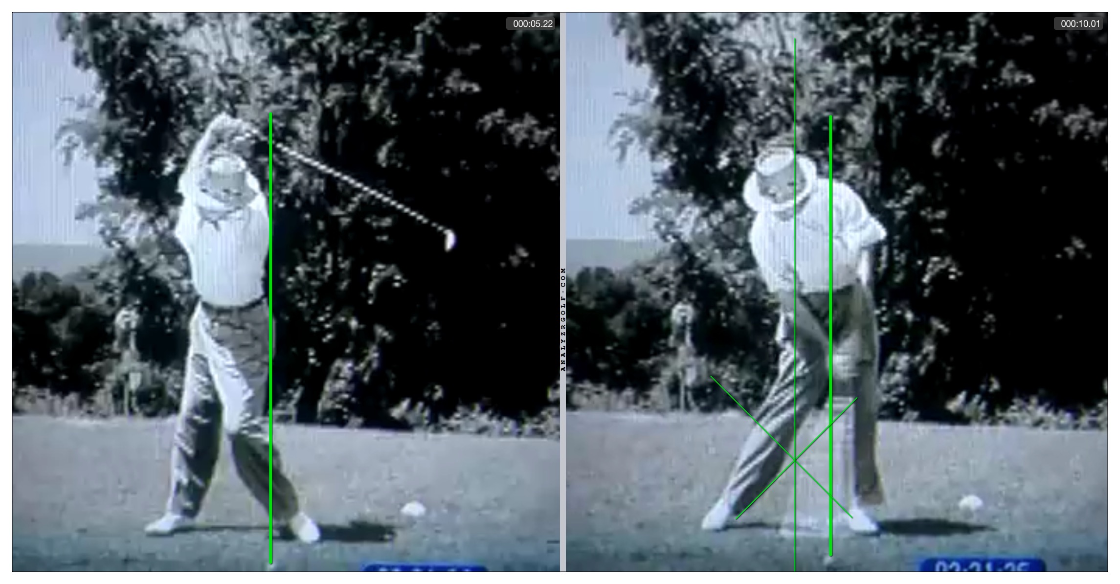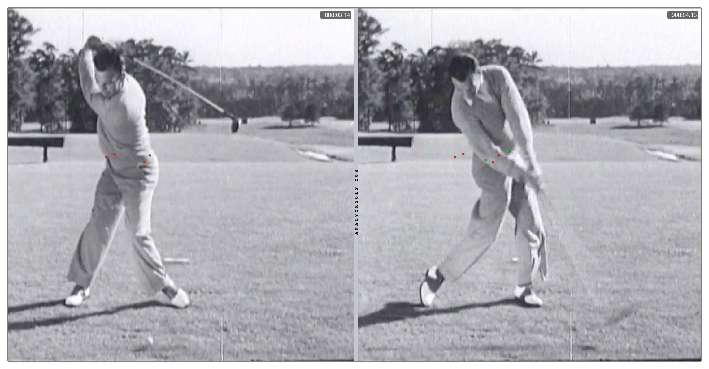 Here above is the Great Ben Hogan sliding forward. Great ball striker. He won around 30 tournaments between 1946 to 1950 after the major accident he had and various injuries he will win 6 more. Correct me if the numbers are wrong. He broke his pelvis and changed swing. He won with both swings yes but the first was more powerfull resulting in many more wins in tournaments.