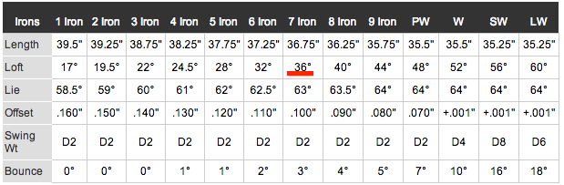 My 7I loft is 36 degrees. Some sets, it's 30.5 degrees. Nowadays, with iron lofts all over the place, the question should be how long do you hit your X degree iron that's Y inches long.