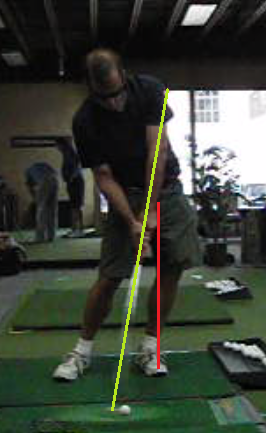 At set up versus at impact. Too much lateral shift, not enough rotation and extension of the hips at impact.