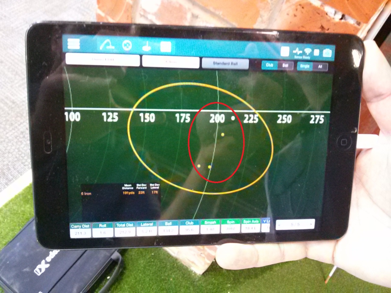 Here is my 7 iron. I think @mvmac forgot to take off a bad shot. I circled the ones that were clumped together better. Just kinda strange that the oval would extend that far down. I really don't see another shot down near the 150 yard area.