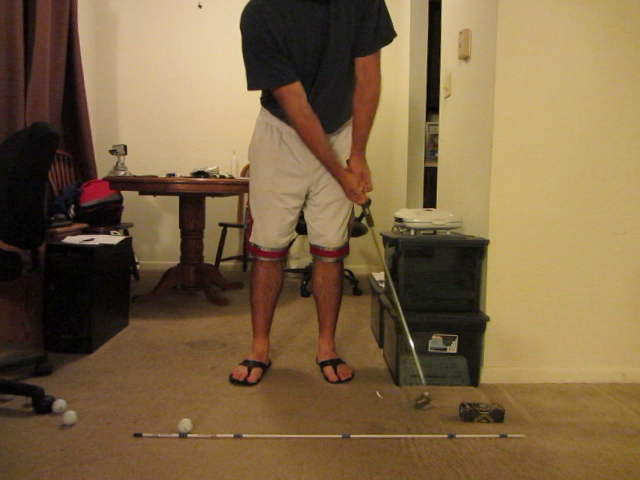1. Make sure putter is flat on the ground before taking grip and then stance.