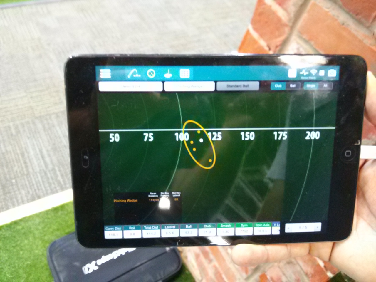 This was my 56 degree wedge. This was a bit more typical of the yardages I see, about 115 yards is typical full sandwedge distance.