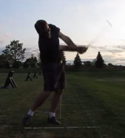 Not as good swing at the range. Heads probably fallen back a bit and the club overtakes the hands to fast. Head tends to fall back more often when the swing gets to long in the backswing and gets to fast. Still can happen when I take a shorter swing. I can catch a few shots fat from time to time. Would like to see more Zach Johnson, he's an extreme case but a good model for me I think.