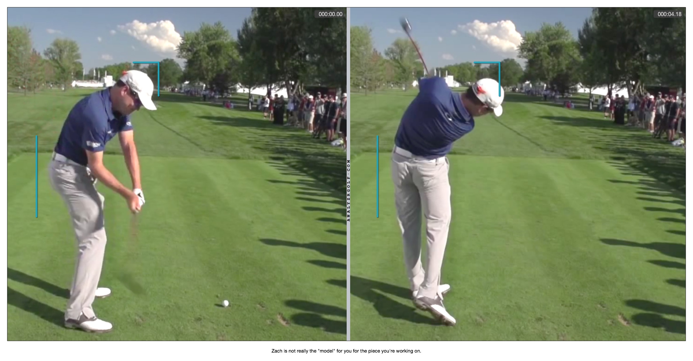 The Zach Johnson FO view is the "result" (to an extreme). Zach does well to do that and I could make a case that he almost has to because… his butt tends to come off the wall and he early extends, too. It works for him, because he manages to keep his turn rates up AND his overtaking rate down, but he's not really the "model" for you from DL: