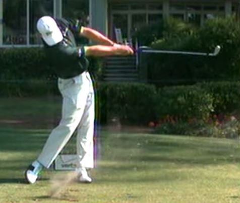 Mostly a good swing from above produces a better overtake rate. Maybe more arms together into the finish might help. Not really overly concerned about getting extreme on this. This position is more of a response to not being good in the downswing. Would like to see more of the Zach Johnson finish.