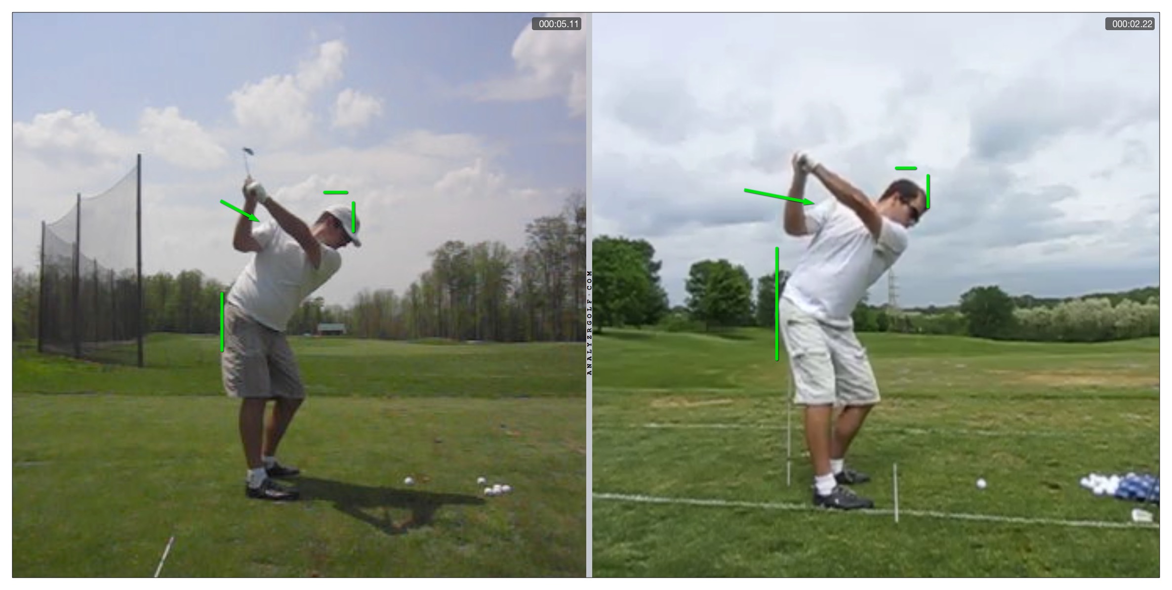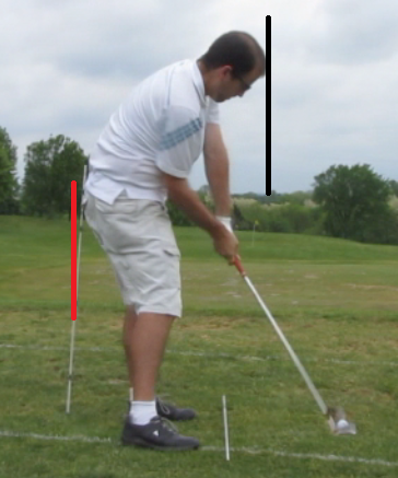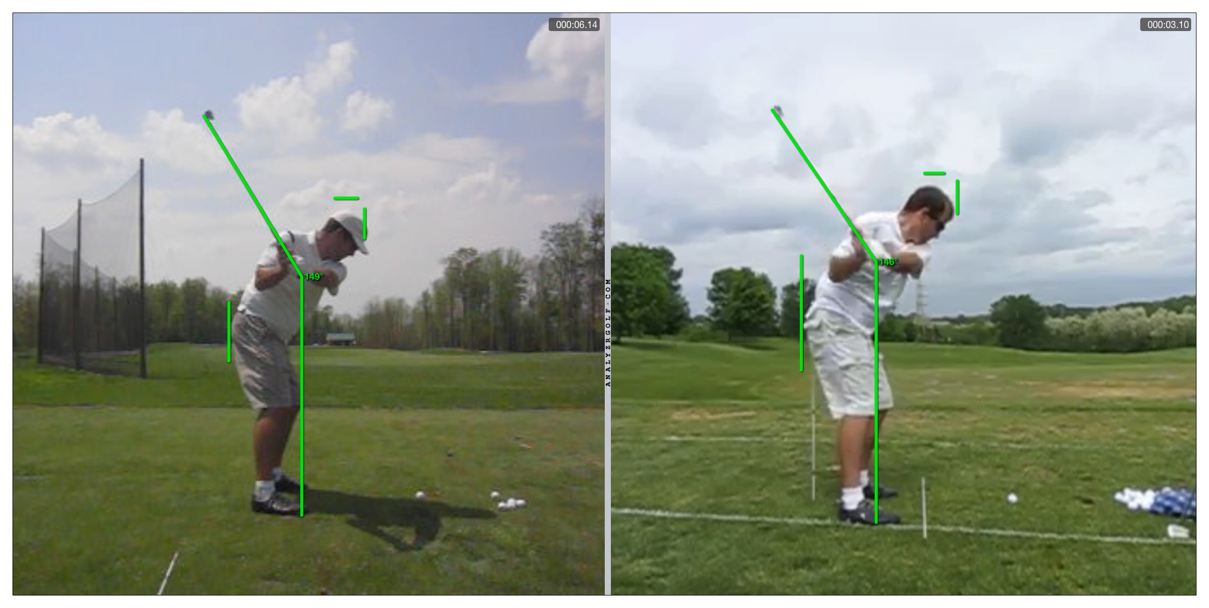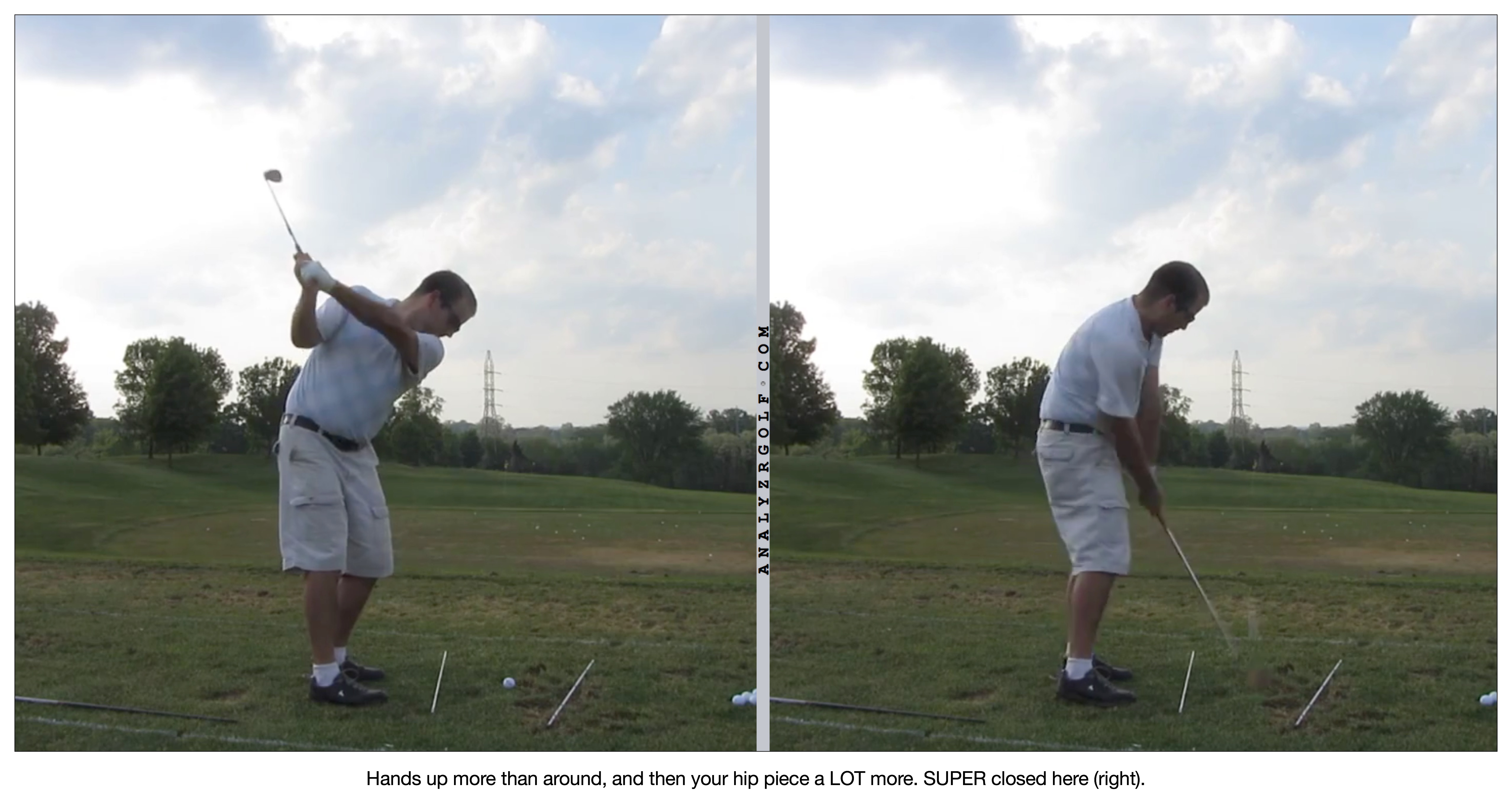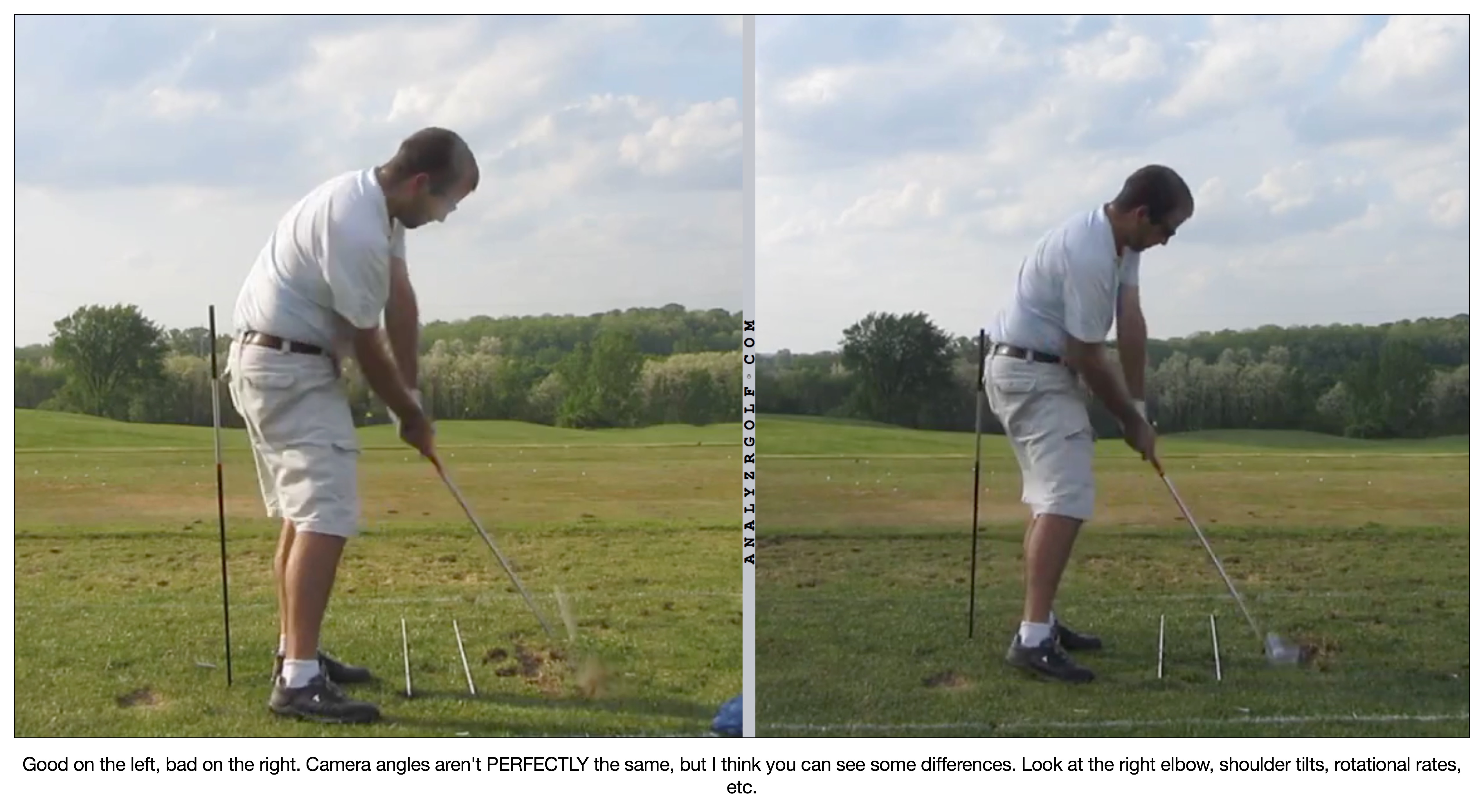 … too deep on the downswing (this angle shows that the shaft is a bit shallower AND the BOC is a bit deeper in the ball of the foot instead of out on the toes). It's a small difference but your swing is not very far off.