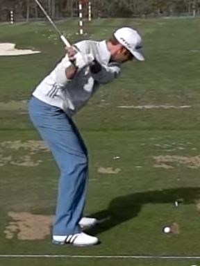 As you know sending the hands out from the top of the backswing orients the base of the plane to the left a little. You're not actually swinging them "out" toward the ball at the bottom of the swing.