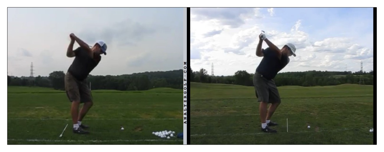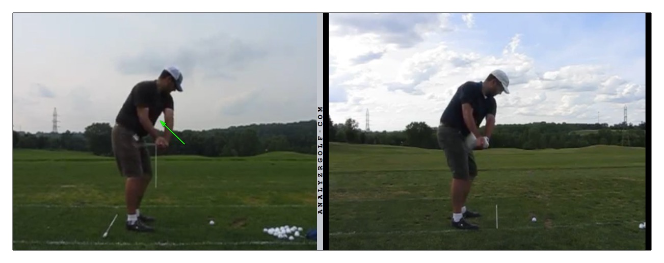 Wondering if the set up here would promote a too shallow shoulder turn and exacerbate the taking the club to far inside and not getting the left arm vertical?