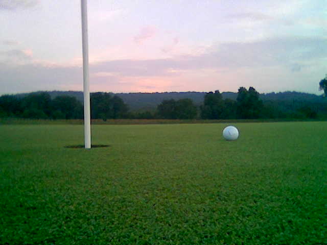 * 14th hole at Bella Vista in Pennsylvania, a newly constructed island green. Played about 150 or so, and hit a cut 9-iron exactly how I wanted, I loved just seeing the shot fly. When it landed, the spin started to move it to the right, toward the flag, and it checked and settle about a foot away. I took a pic: