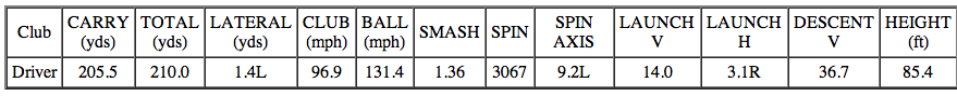 Have been working on raising my driver angle of attack and am getting some decent results. Averages from 20 shots on the range today today. Sub in proper golf balls and ball speed would be around 144 mph for 235 yards carry, which is good for me.