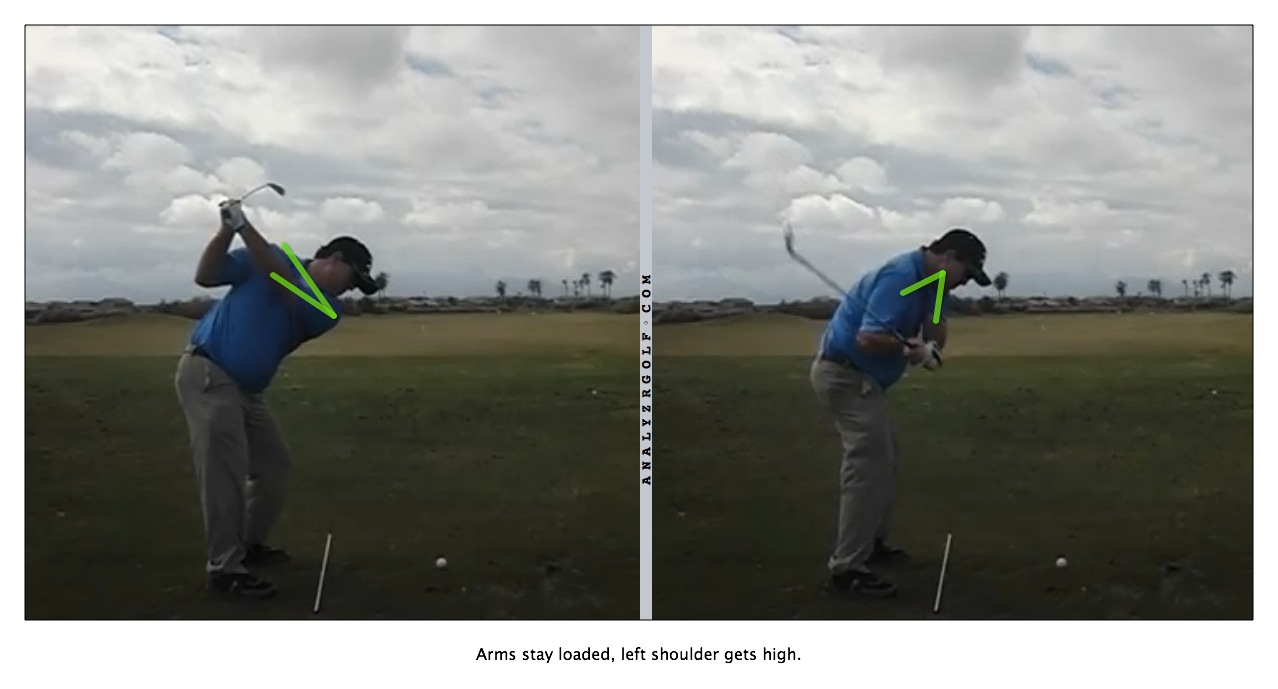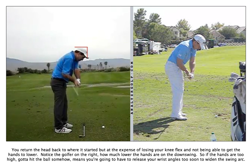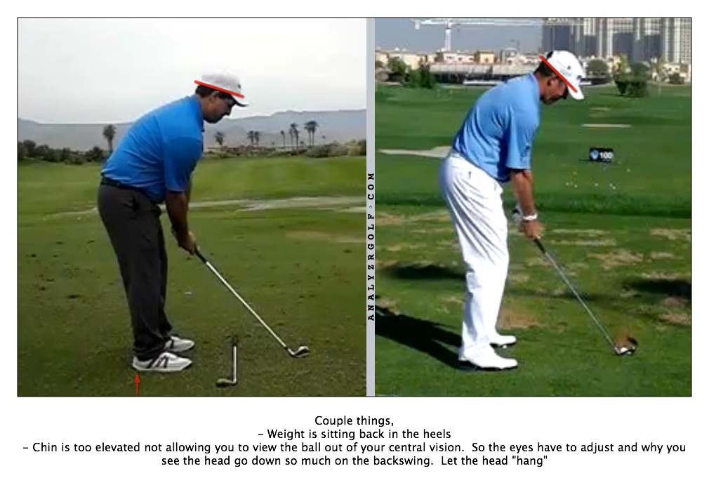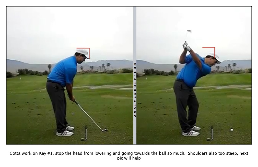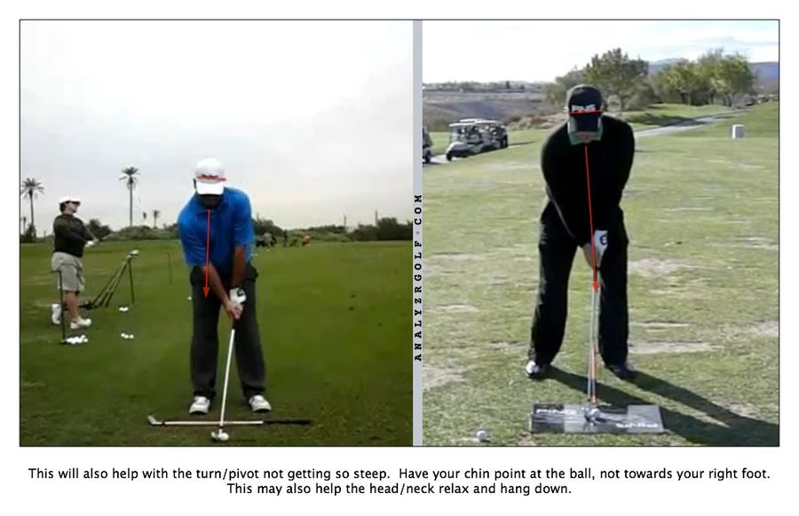 Beach is def on the right track with his suggestions.  I think a lot of the issues with the head moving and the arms being too deep is due to the way the neck is tilted.  Posted this pic previously.  I was actually talking with another instructor about this very issue today, the possible connection with the neck tilt, arm depth, arms coming too far out on the downswing.
