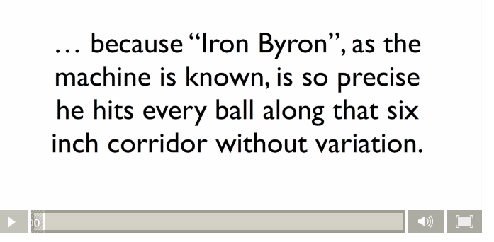 After seeing this, I decided to analyze the machine.  The machine hit the ball 100% consistently whereas pros were only about 70%.  To me the machine looked simple yet it got perfect results.  So why not at least look at it?  In looking at it I realized it only had 3 elements that allowed it to hit perfect shots: