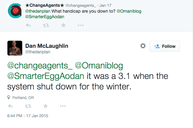 I can’t help it but I keep on wondering what it is that you’re working on. In your posts you talk a lot about deflattening your swing and how it is important that your clubs match your swing. You get yourself measured again, new clubs are proposed and ordered, and then after two months of trying them out you decide to revert back to your old wedges (that apparently don’t fit your new swing). So what exactly have the last months brought you in terms of progress and where is your focus?