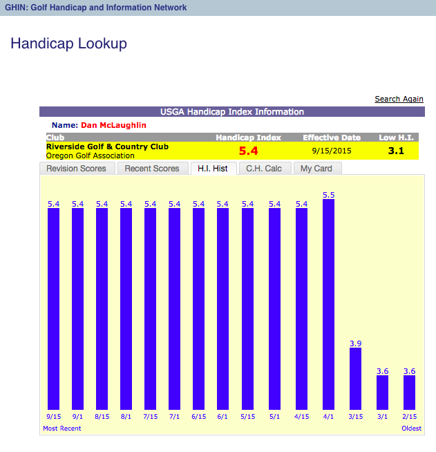 Fair point, a decent percentage of golfers are vanity cappers and sand baggers.  In Dan's case I won't question his integrity as much as I do his overall ability to play golf at a 4-5 handicap level given his performance in tournaments and other away courses.