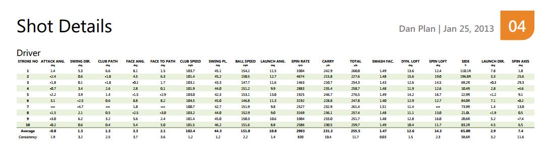 I just looked up Dan's more recent stat, posted 6 months after the ones you posted. It looks like he does drive 270, carrying 255, with a slight draw. http://thedanplan.com/blog/wp-content/uploads/2013/06/Dan-Plan-2013-06-21-Multi-Group-Report.pdf Given this newer data, I would say he could be a 4.1 handicap. He did not post any newer stats.