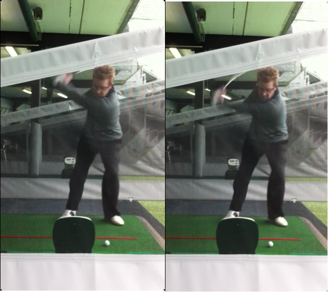 The proper weight shift brings back heel off ground impact, its why every tour pro has the back heel risen, tge OP is flat footed and square to ball impact. Not an IMPACT SWING.