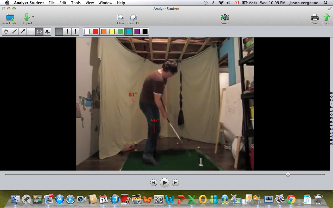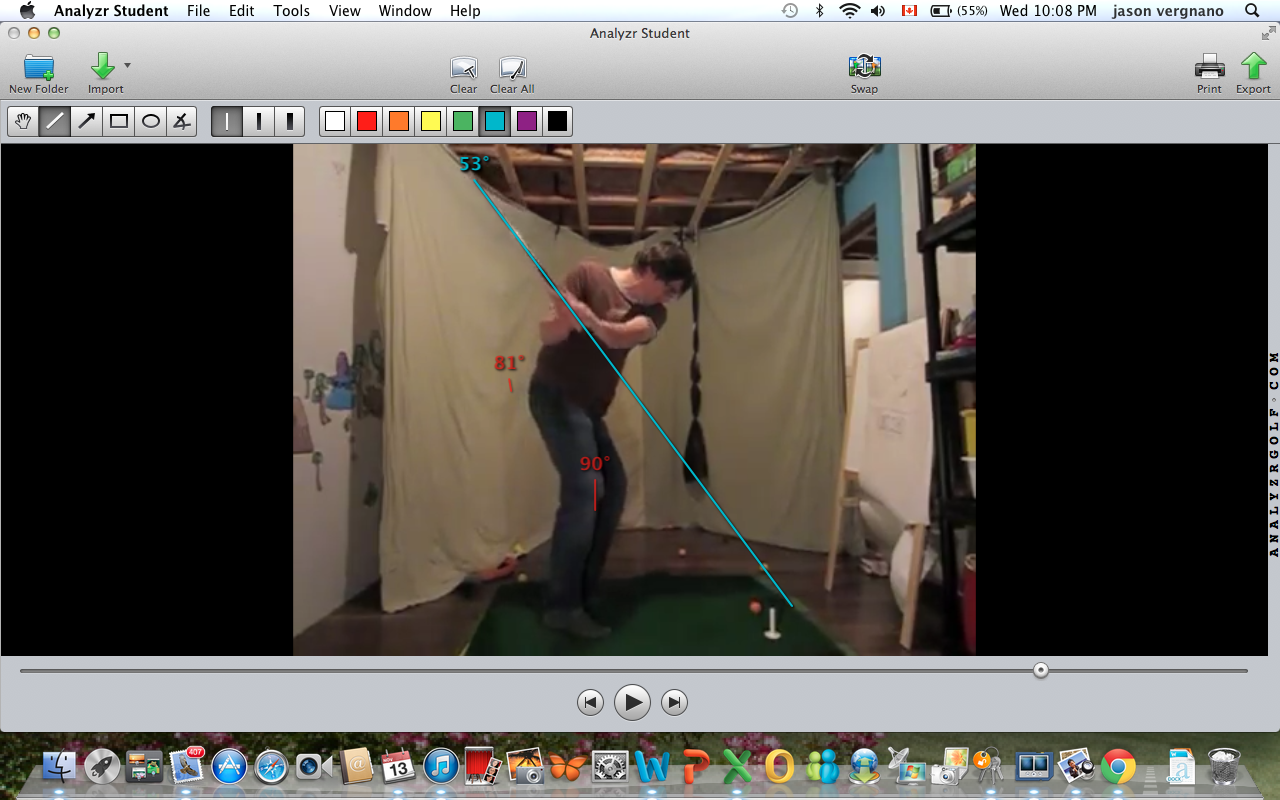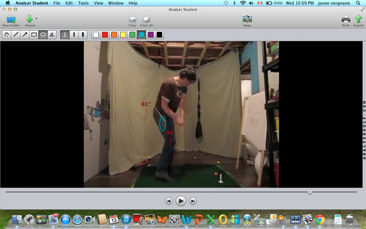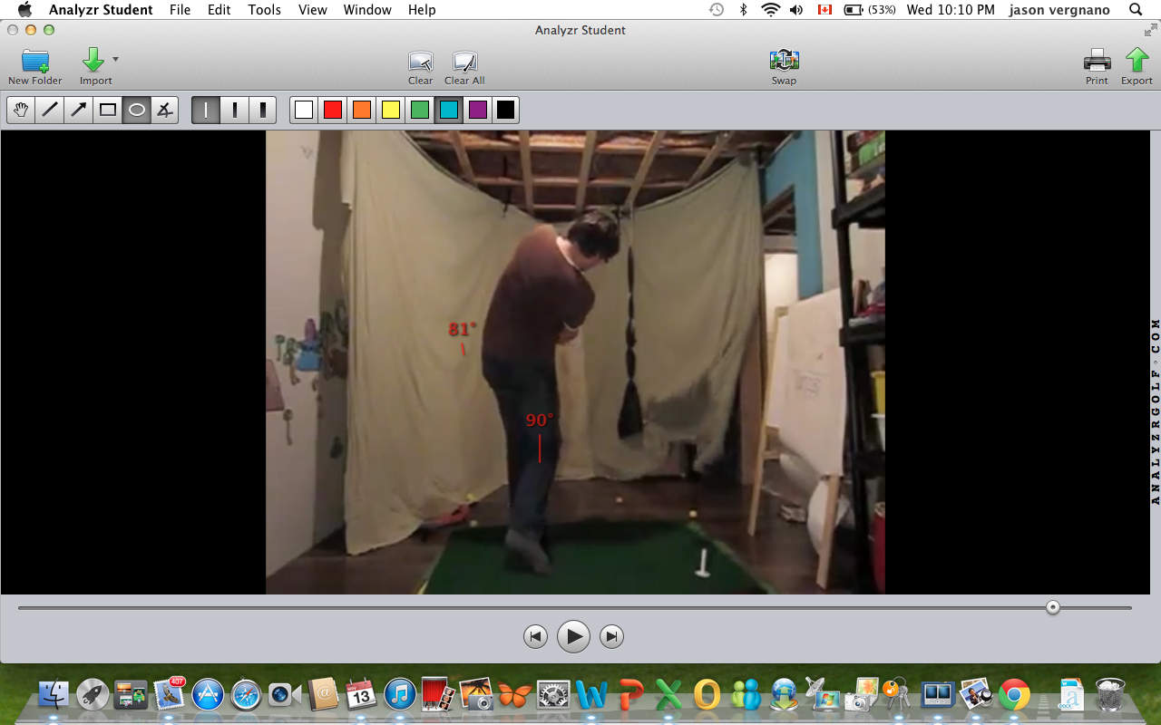 I'd be lying if I said I wasn't worried about how hard I'm humping that poor little goat, but I was nailing the path all session . The big rubber tee makes a much better obstacle than a golf ball. Feeling the weight of the clubhead "dropping" behind me at the start of the transition. As soon as I feel the clubhead "drop" I try to turn my chest and hips to the target as fast as I can. Really did the trick with flattening out the shaft and I didn't hit that big white tee once but I'm thinking that there's too much chaos in my lower body...