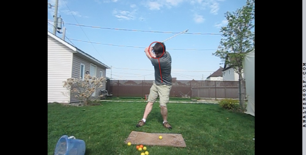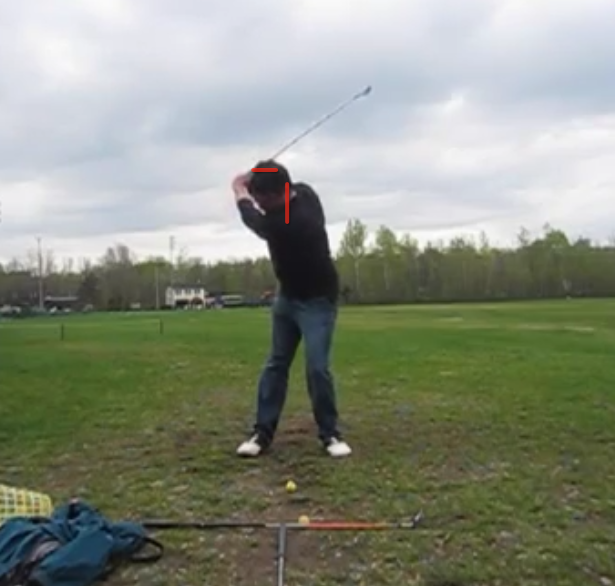 The head's going up a couple inches, but otherwise, it's a great backswing. I can't see how this is the priority right now when he has no pelvic extension at all and is leaving so much weight back.
