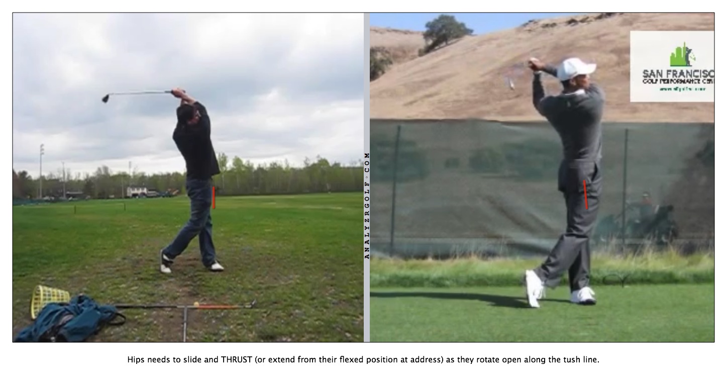 Guys, is it just me or could he use a lot more pelvic thrust/extension? Red line is left hip location at address.  [URL=http://thesandtrap.com/content/type/61/id/97870/] [/URL] RE: this Crossfield video... I just want you to understand that the pelvis has to extend (called "goat humping" when overdone). I'd post the hip slide thread here, but no where on that thread is there any mention of this pelvic movement.