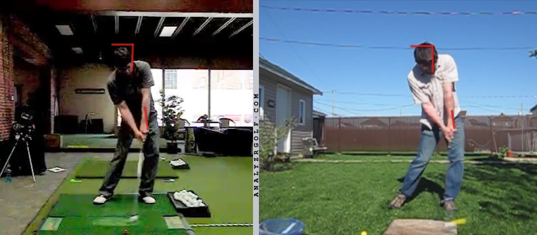 Here I can see that I may be over turning a bit too much for my talent and flexibility. Not sure if that lead knee flexing towards the ball is an issue or if it's contributing to my head moving forward.