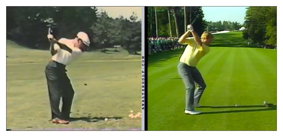 Quick terminology, pitch means that the right arm is externally rotated, Hogan on the left while Jack has a punch elbow. Obviously both can work.