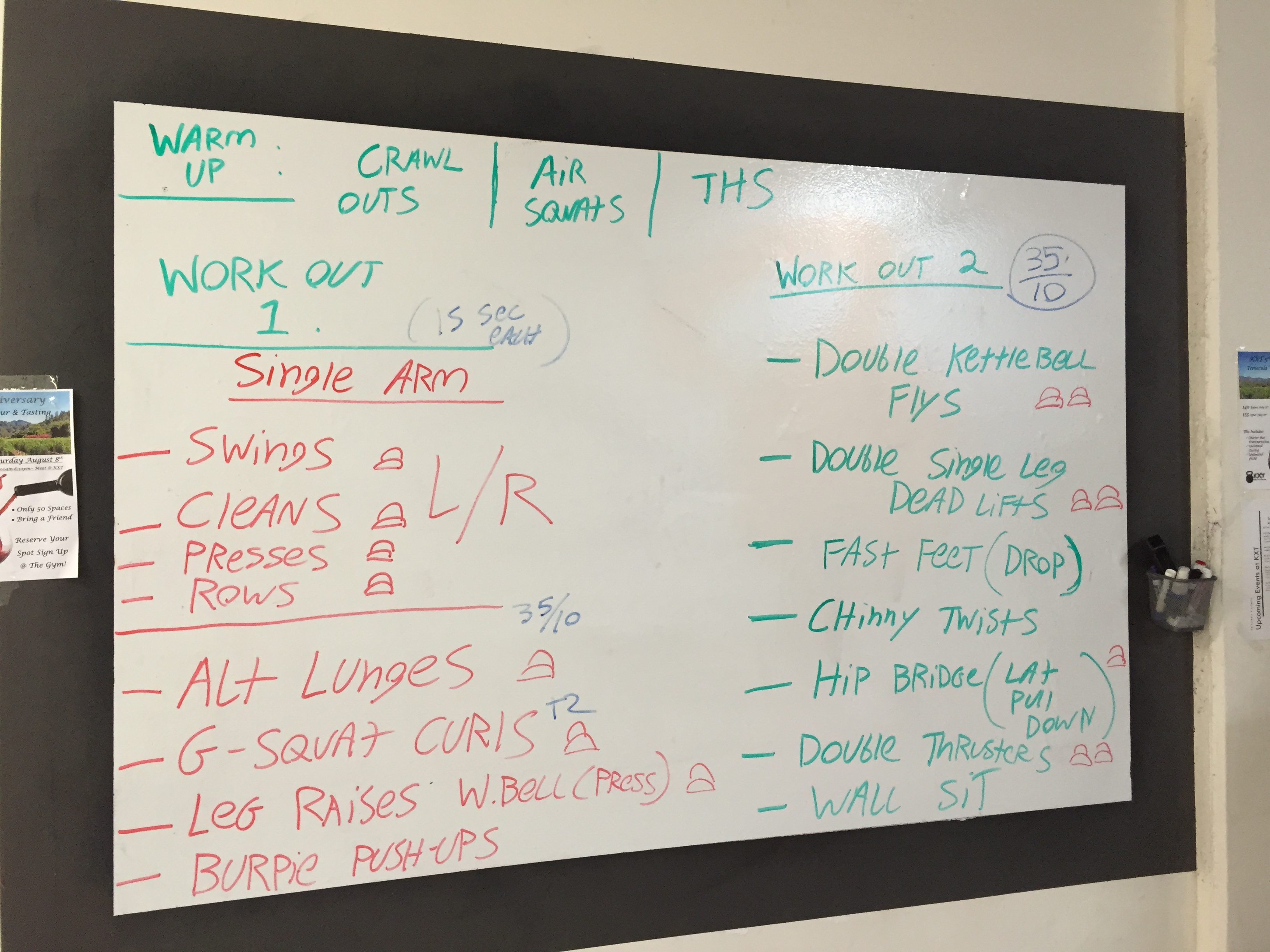 Pull-ups 3x7 Power Cleans 3x10 Rows 3x10 Squats 3x7