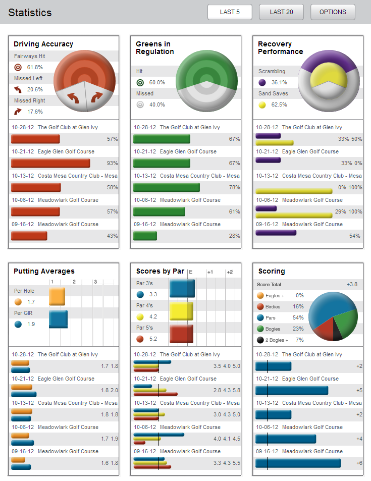 Looking at my most recent stats... I finally got my GIR to 60%.  Would like to see it reach 65% or higher.  I've got work to do with my Scrambling %...   That is my weakest part of my game.  That and my putting.  Both will improve as I begin to practice those facets more.  But I still need to improve my pattern.