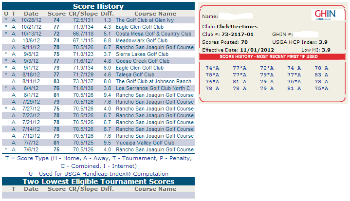 I shot a 74 on a Sunday with a differential of 1.3.  That should help my handicap... I'm very interested to see where I'm at tomorrow when my GHIN is updated.  I'm close to breaking the 4.0 barrier.  I'll post an update tomorrow, and update my swing thread as I have been tweaking a few things on my downswing since my last video.