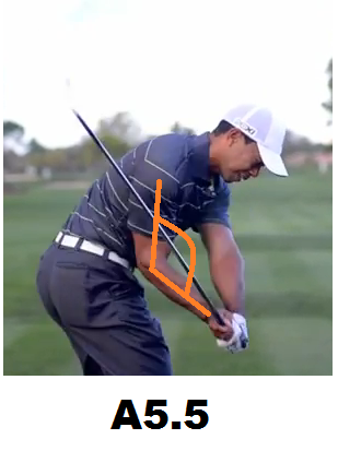 I've tried to actively cup my wrist at address (middle image), and maintain that cup throughout the swing. But have found during the loading of the shaft - into the transition from A4 to A4++++ it just happens to palmar flex or bowe (right image).  For the most part I can get away with it, but when my tempo gets too quick, my longer irons and fairways tend to come off at a lower trajectory than I'd like to see.