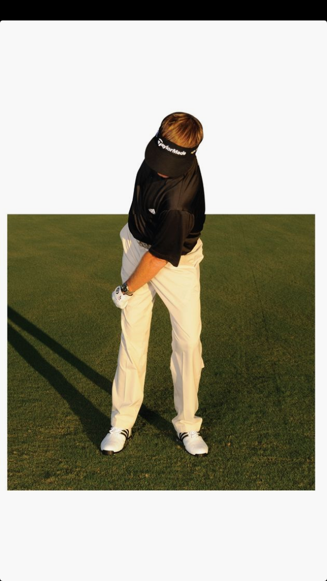 I play really good golf when I have this visual - left shoulder getting under my chin - with a steady head.  I need to get back to that visual because I've been trying to get so much extension on the backswing with my right leg and trying to get that right hip deeper, that it was causing some contact issues (head leaning into the ball on the back swing).  Ultimately this was leading to heel side contact - and the dreaded shank would rear its ugly head every now and then.