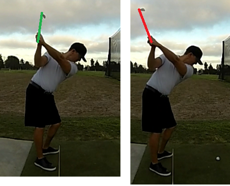 But the rehearsal swing on the left, just looks like it has clean geo's compared to the right.  Plus I hate how gimpy that closed clubface looks in comparison... I just looks 'gimpy' to me.  I know there are a lot of good players playing with a closed club face, but its something that has bugged me for - well - two years now!