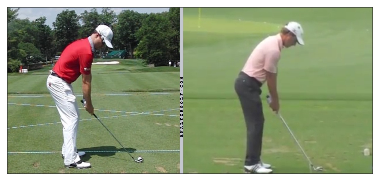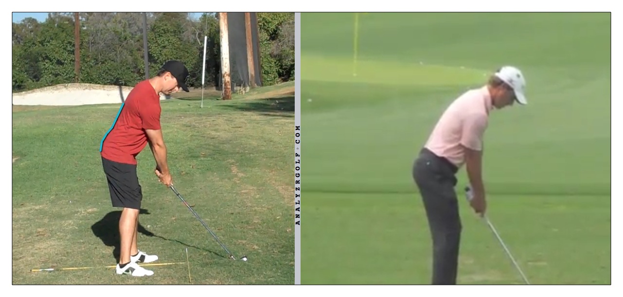 Lets focus on the back first... My stance is damn close to Grant's - minus the curvature of the spine at address.  But my physique is much different than his.  I'm not sure I can even get my back that hunched over without drooping my shoulders, sucking in my gut / stomach to push the small of my back out.