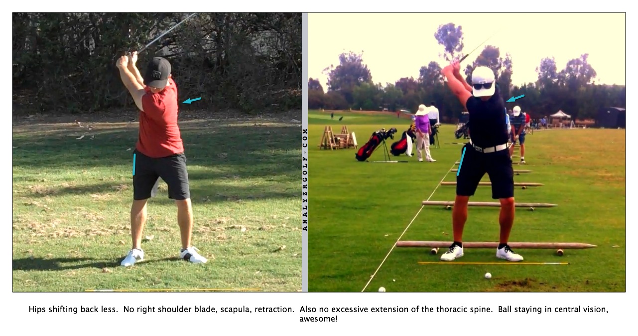 Neck tilts huh?  Looks pretty good Shawn.  When I sent you that video or Evolvr a few months ago talking about the posterior I talked a lot about how it will help the hip turn stay more centered.  It occurred to me today that the arch in the lower back also has some contribution to the arching, palmar flexion of your left wrist.  With the "bad" posture, hips can't turn, so to feel a full turn you retract your right shoulder blade, which gets the right elbow behind and arches the wrist, gets the face looking closed at A4.