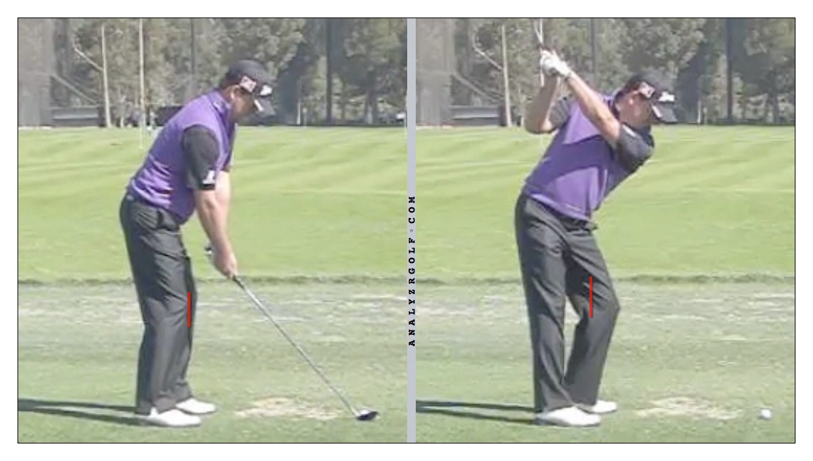 We're talking backswing and I think you're talking downswing? The trail leg releases flex in the backswing in order to allow for rotation around an inclined plane, the knee will regain flex on the downswing and allow you to push off or "jump" through impact. You should really read the thread from the beginning. Take a look at Rory at A1 and compare his knees to A4 and you'll see a definite change in flex. We are not talking about fully straightened and locked but there is a definite straighten-ing going on. Look at Tiger, a notorious squatter, at A4 and you'll see that there is clearly a change in knee flex from the address position. Very, very few pros truly maintain flex (the only one I can think of is Anthony Kim) and the ones that do are probably risking injury and aren't as consistent as they could be.