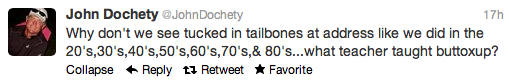 Instructor John Dochety brings up some good points on Twitter last night.  When did the whole straight back, stick the butt out stuff start?