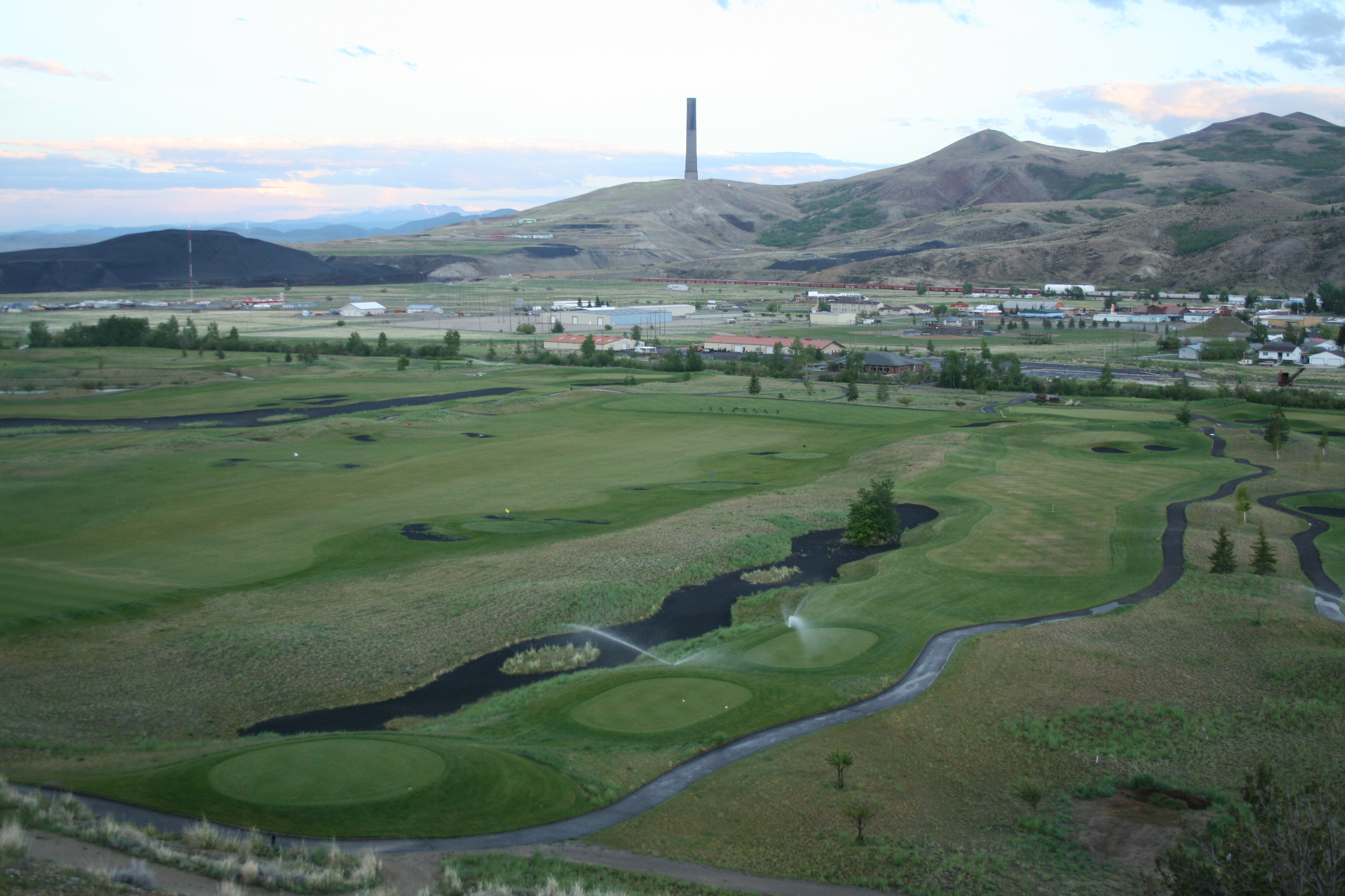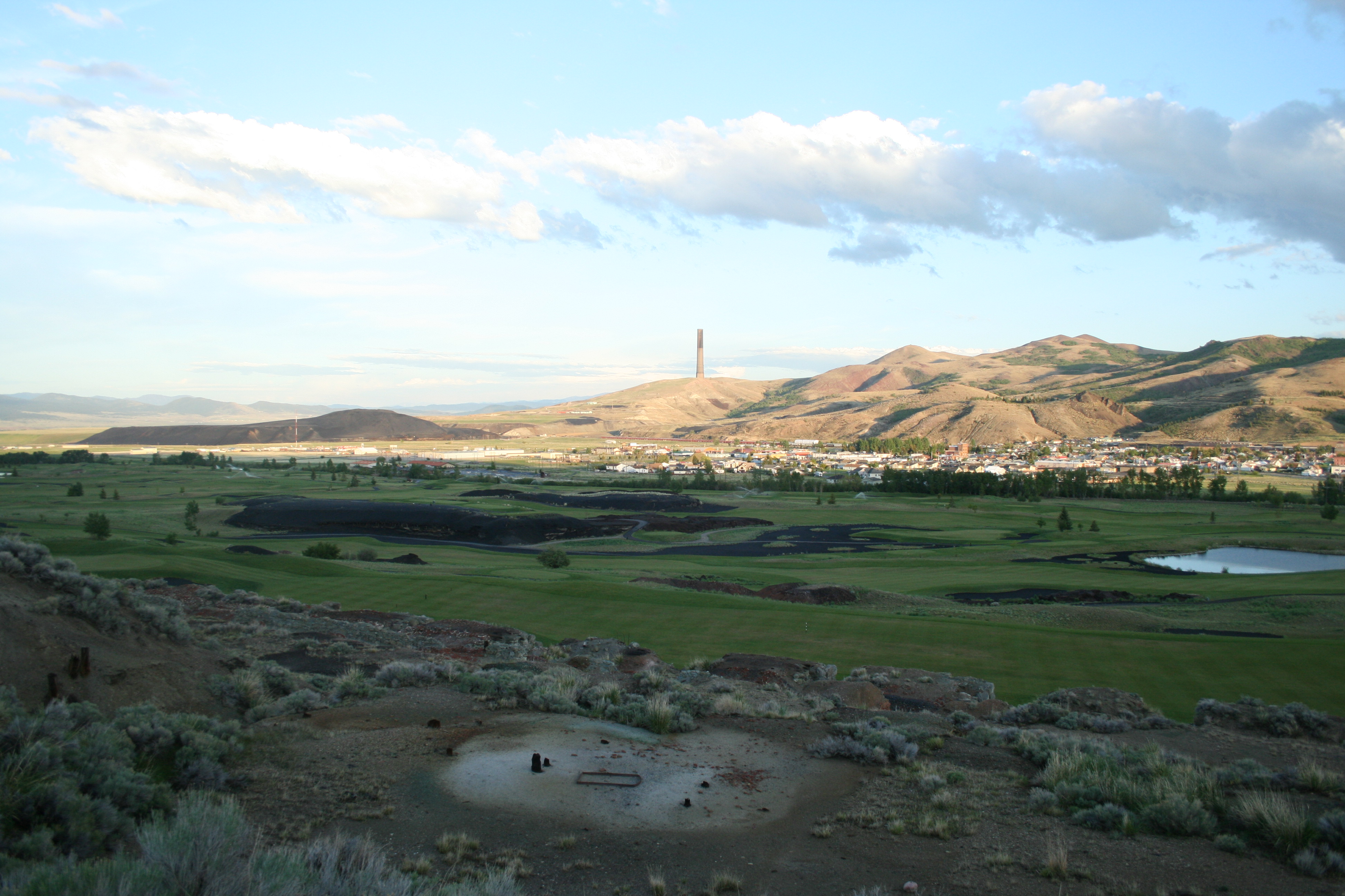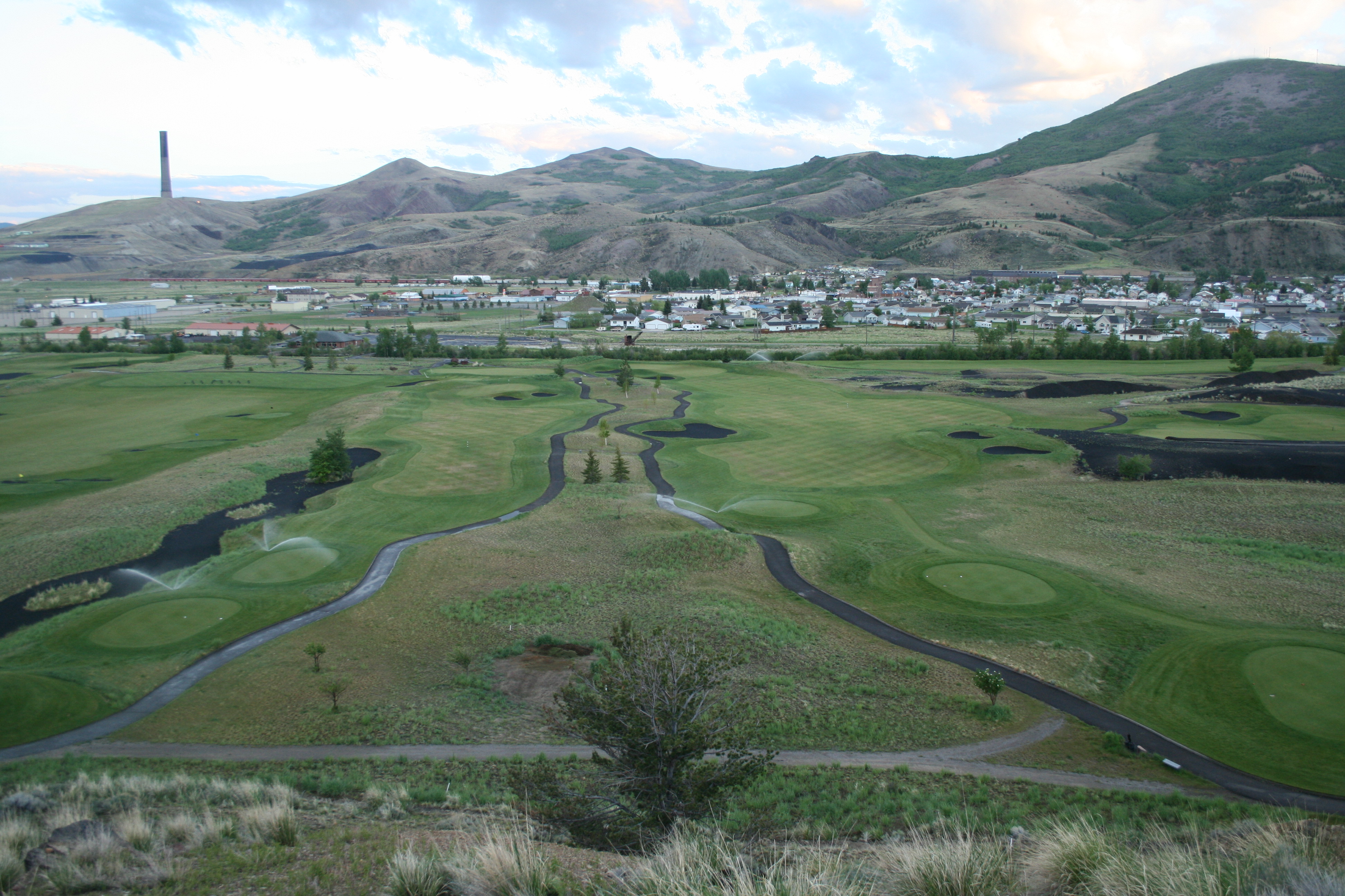 An overall view of the front nine, with the town and the "new works" copper smelter in the distance (also not in use anymore)