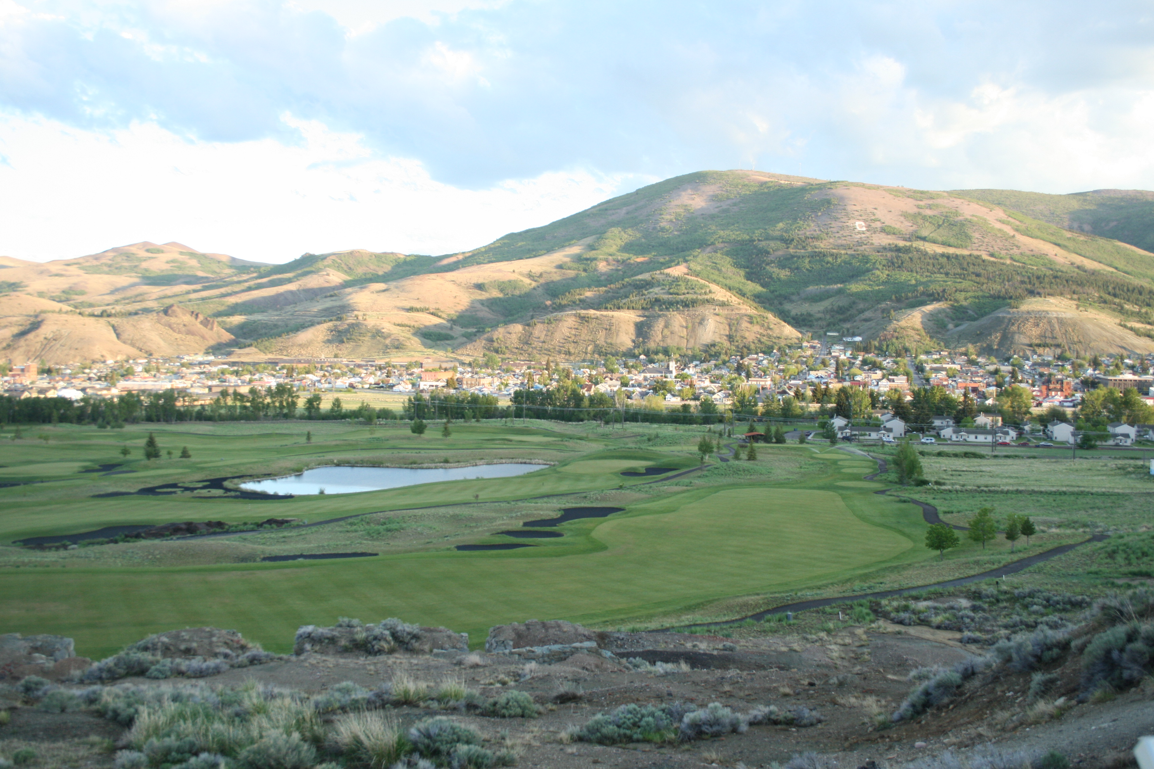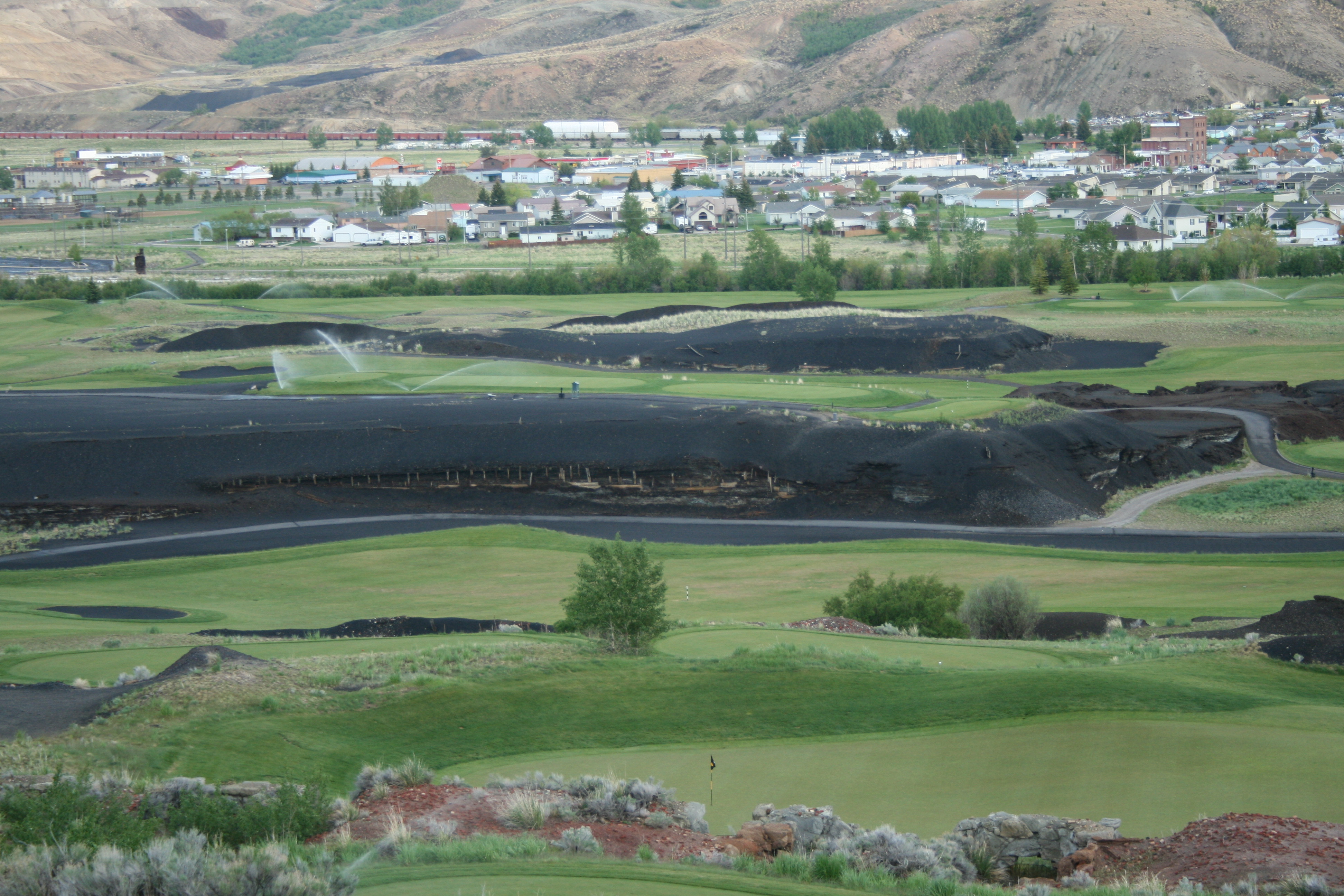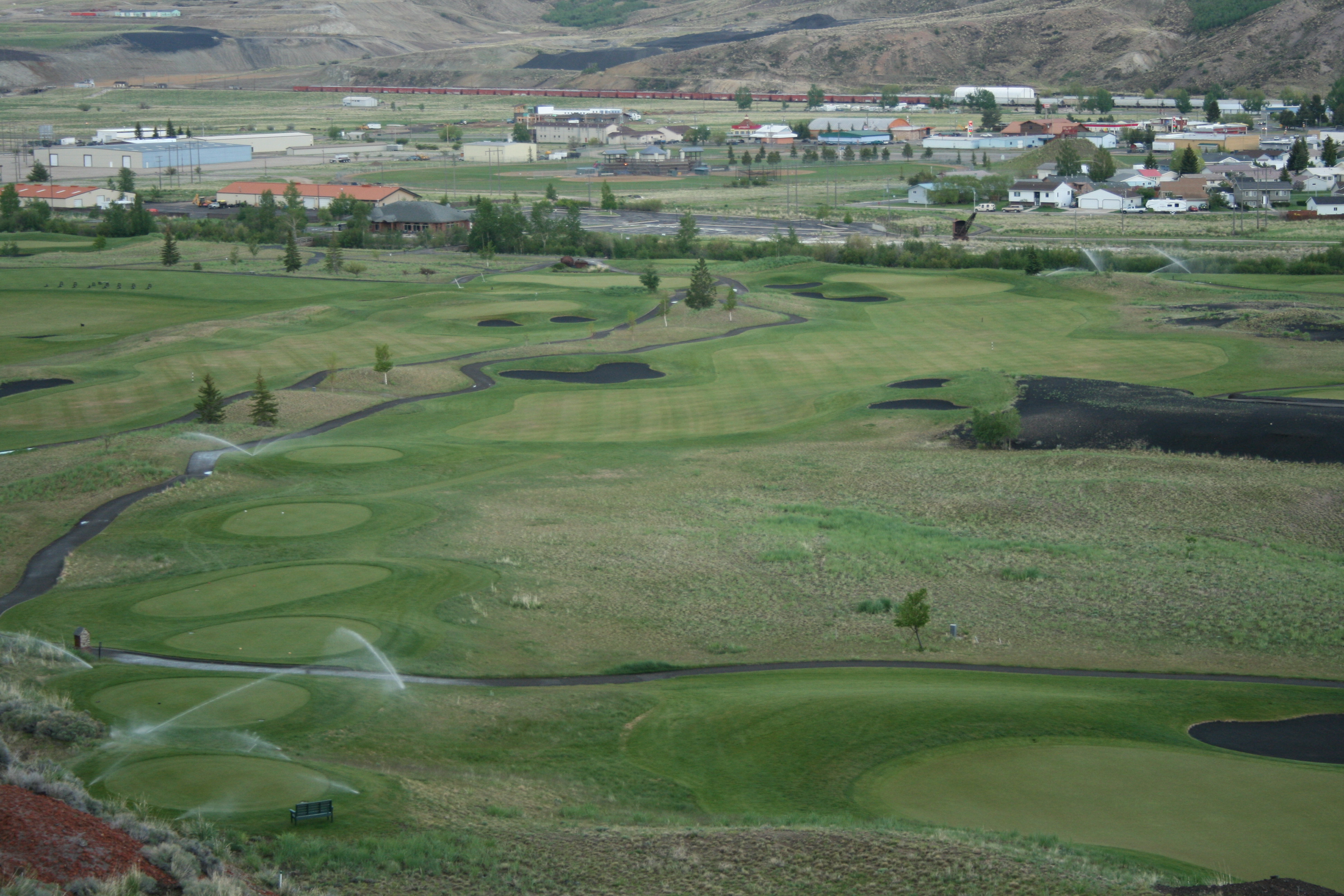 An overall view of the front nine, with the town and the "new works" copper smelter in the distance (also not in use anymore)