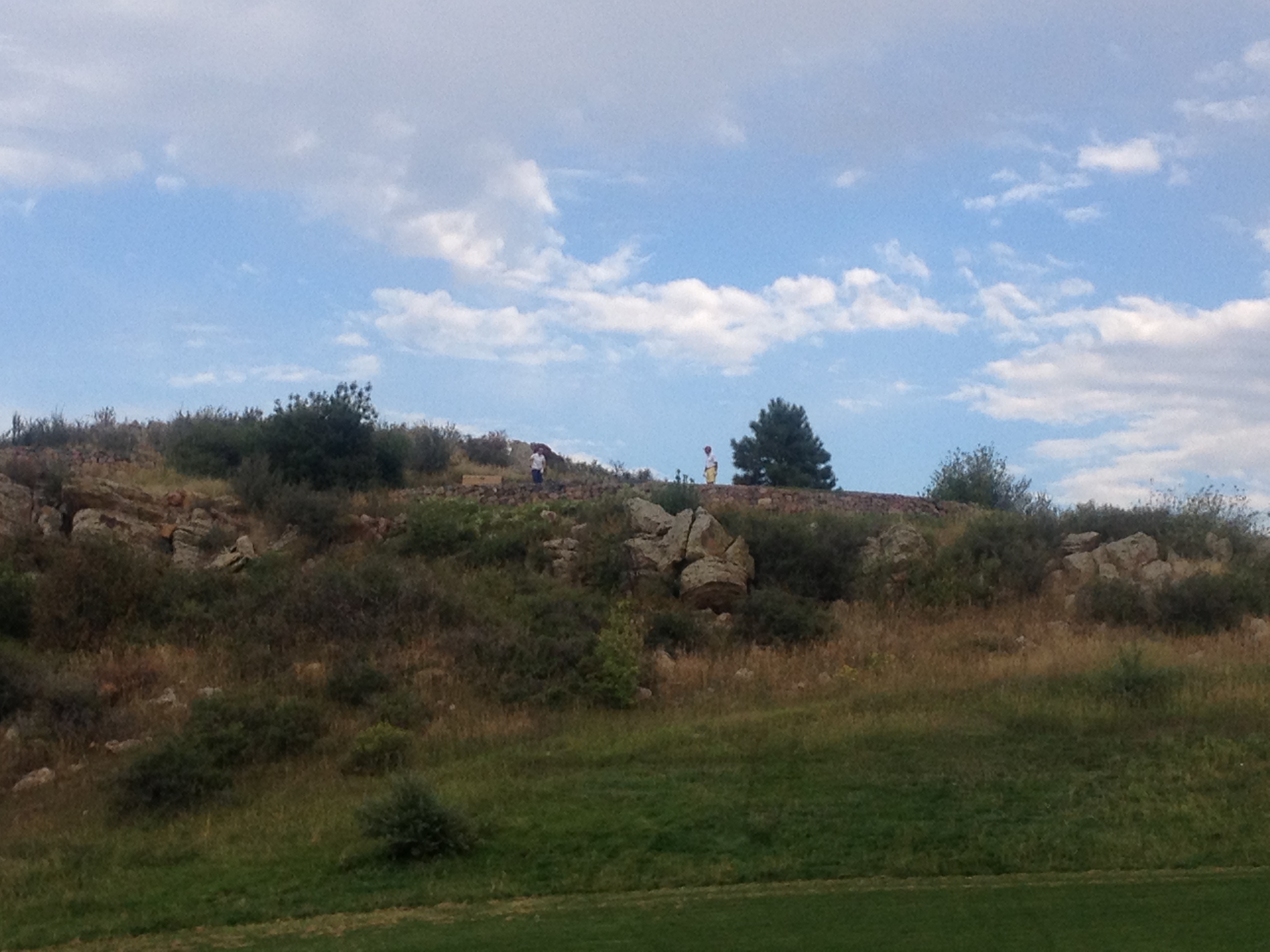 Shot these Sun. at Mariana Butte, Loveland CO. Fun day out with the folks on a beautiful course. It winds through a luxury development situated around a series of buttes. Two of the par 3's are actually on and below the butte, the elevated tees are very high. One was playing 172 yds and I hit a very soft 48* wedge that landed on the green. I can't find my pics of that hole but I got a few of the shorter par three on the other side. Took one from the side of the green looking back up at my Mom on the red tee.