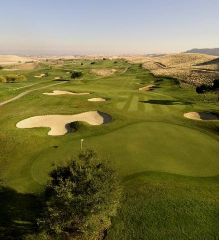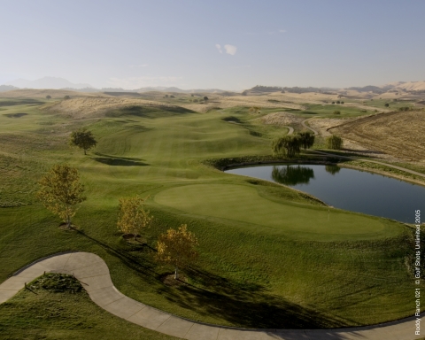 #6 a downhill par 5. most lay up because that ribbon of fairway on the right is only 15 yards wide and if you put it in that grass good luck finding it along with the rattlesnakes.
