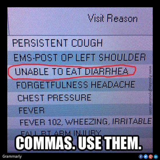 Lots of random commas, lol, it's like listening to Christopher Walking read a script. :-P