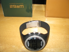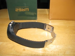 The watch is sharp looking and looks like a typical sports watch.  The buttons are large and easily depressed...even with golf gloves on.  The most "controversial" issue seemed to be ESN's choice to go with a designer-style watch band with metal clasp rather than the typical sports watch band.  I'm glad they went with the watch band they did.  We all know what happens to sports watch bands in a relatively short time frame (year +/-).  They get brittle and start cracking where the band and buckle meet.  There is a small button on the side of the clasp that releases the clasp and opens the band.  You can see it in the photo that shoes the clasp and underside of the watch.  My only concern here is the durability of the post used that inserts into the socket on the metal clasp.  That's visible in the photo showing the open clasp.  Only time will tell if the WR62 band and clasp are more (or at least as) durable than a typical sports watch band.  The band is easily adjusted by removing the number of band segments needed to get a snug, but not too snug, fit.  This fitting is a minor inconvenience and certainly does not require a jeweler to do this.