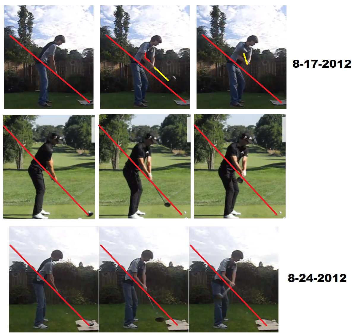 A1 is address.  A2 is when the shaft of the club is parallel to the ground on the backswing.  Below is the shots I took of your swing on 8-17 compared to Adam Scott - and then compared to your video from today 8-24.  You can see your taking your club from start-up on plane better.  But you should really focus on the moves of getting from A2 to A3.